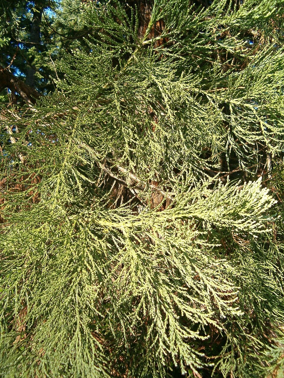 Ses feuilles sont des aiguilles pointues en forme d’alènes, persistantes et en spirale autour de la tige, de couleur vert grisâtre et d’une longueur de 3 à 15mm avec généralement des stomates sur les deux faces. Elles dégagent une odeur d’anis quand on les froisse.