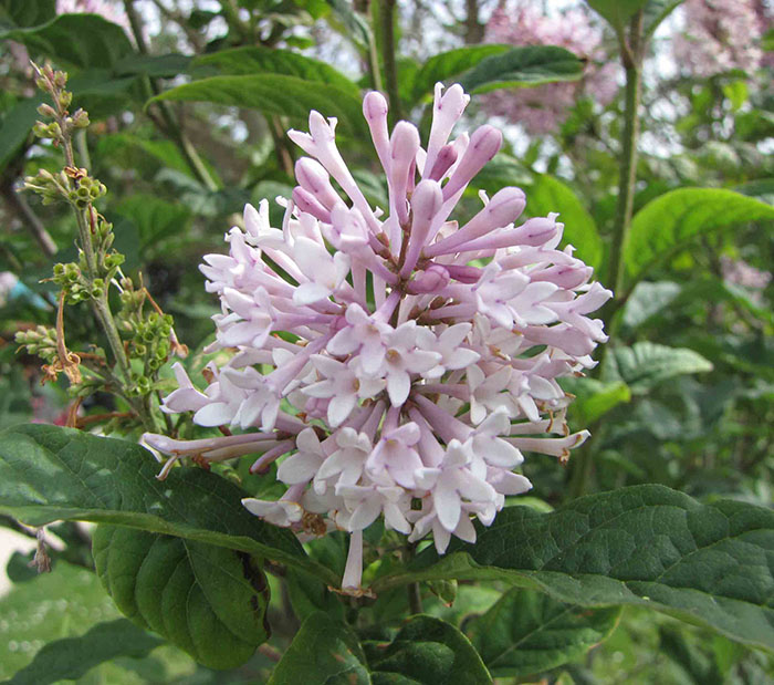 Syringa josikae ou “Lilas de Hongrie” a de larges feuilles elliptiques bleu-vert ou argenté dessous. Ses fleurs sont tubulaires, de couleur violet pourpré, en épis de 15-20 cm de long, elles s’épanouissent en Mai et Juin et dégagent un parfum délicat.